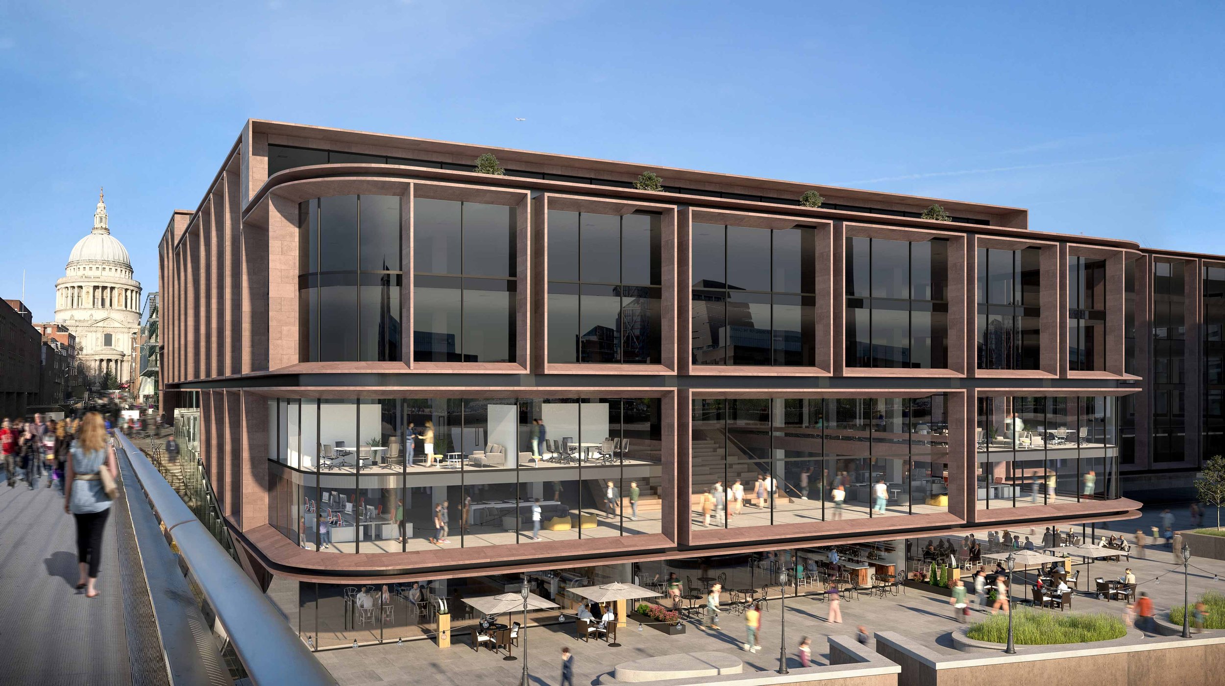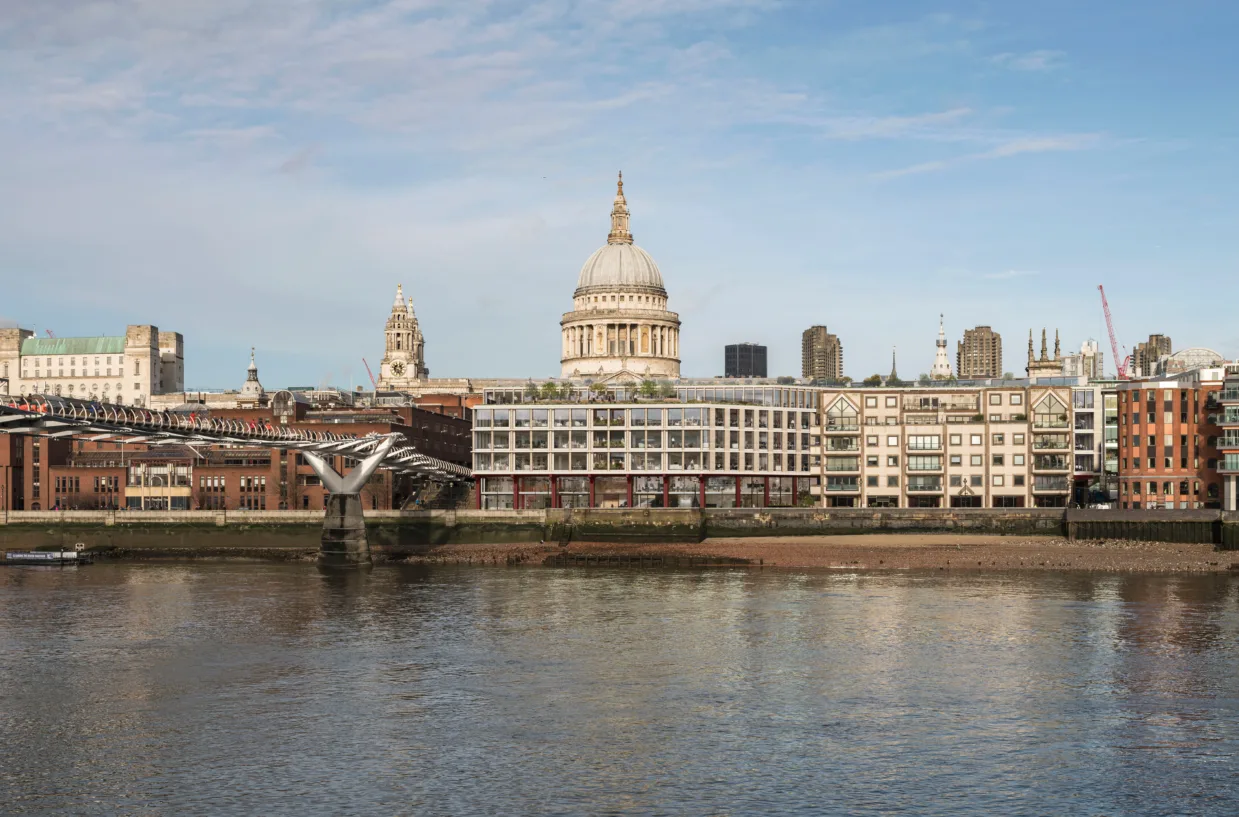 The development comprises the comprehensive refurbishment of Millennium Bridge House. The existing building located immediately to the east of Millennium Bridge on the north bank of the River Thames having been constructed in the late 1980s. The building comprises 293,284 sq ft total GIA of commercial office space over a total of six floors, a basement and a plant enclosure at level 06. The Works comprise stripping the building back to the structural frame, undertaking numerous extensions, reconfiguring atria and re-cladding the entire building. The scheme provides office accommodation with new retail/ restaurant units and multiple accessible roof terraces at upper levels.